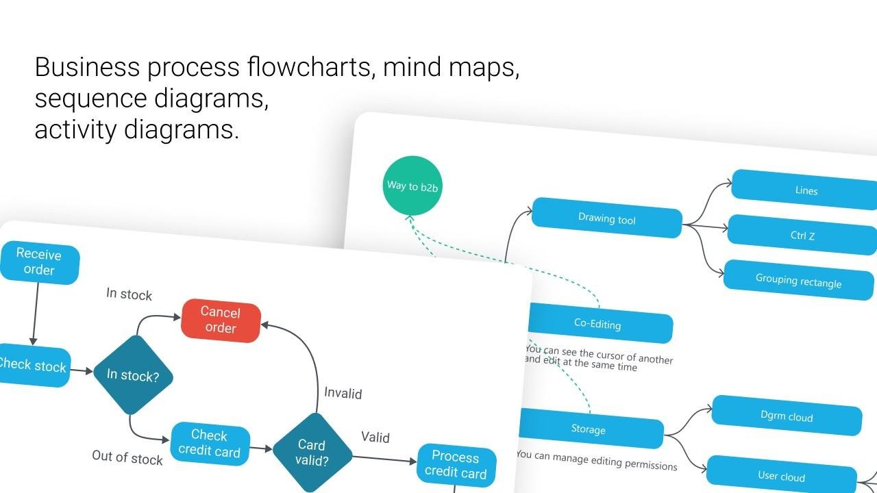 DGRM is a browser-based flowchart editor that enables users to create diagrams quickly and efficiently without any setup or registration. It supports a wide range of diagram types, including flowcharts, mind maps, sequence diagrams, activity diagrams, and database schemas. The platform uses a grid-based drawing system that automatically aligns elements for a clean and professional layout. Its minimal interface removes unnecessary complexity, allowing users to focus on building diagrams. DGRM works seamlessly across devices, including desktops, tablets, and mobile phones. Users can share diagrams, making collaboration simple and accessible. It also allows exporting specific parts of diagrams as images or copying them directly into Word or Google Docs. A unique feature lets users reopen and edit diagrams from image files without needing the original source. The tool includes helpful shortcuts and video guides for improved usability. Overall, DGRM is a lightweight and user-friendly solution for creating and sharing diagrams online.