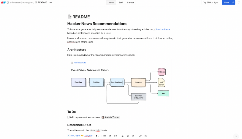 Eraser serves as a platform for documentation and diagram creation tailored for engineering teams. It allows developers to swiftly generate documents and diagrams through an intuitive user interface, utilizing keyboard shortcuts, markdown, and diagram-as-code techniques. Furthermore, users can store their documents and diagrams both on the Eraser web application and within their GitHub repositories, ensuring seamless integration and access. This dual storage capability enhances collaboration and keeps all vital resources organized in one place.