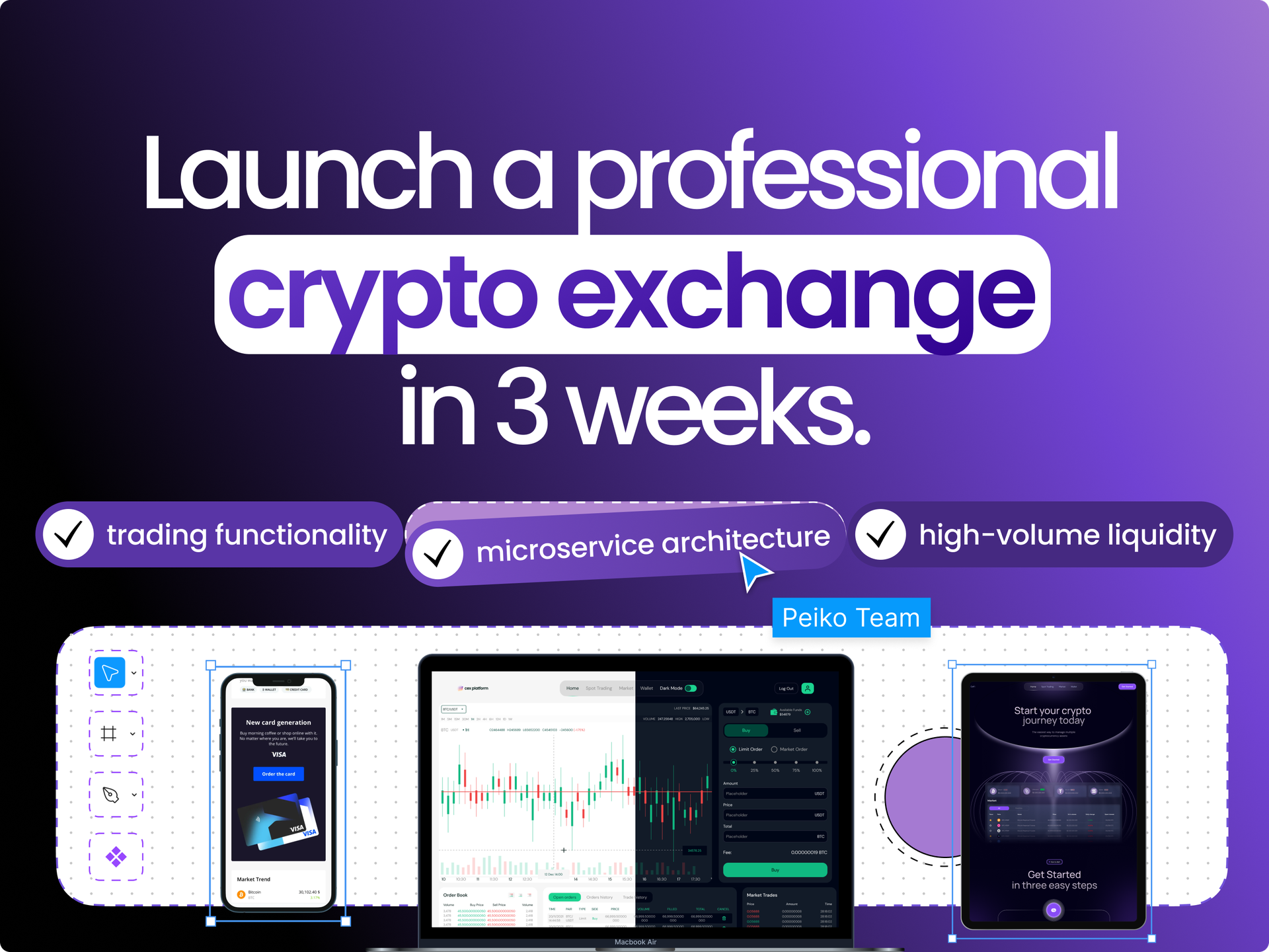 Peiko.Solution is a customizable white-label offering created by Peiko, a renowned blockchain development firm known for its comprehensive white-label cryptocurrency exchange solutions. You can establish your unique branded centralized crypto exchange (CEX) in just three weeks, featuring high levels of customization, robust security, and scalability. Our proven platform not only accommodates spot, margin, and futures trading but also includes a high-performance OrderBook, liquidity and trading bots, Fireblocks custody integration, SumSub KYC, and complete ownership of the source code, which is hosted on your own servers. There are no subscription fees or hidden costs involved, making it a significantly faster and more cost-effective solution—5 to 6 times cheaper than developing an exchange from the ground up. Established in 2017, Peiko has successfully completed over 100 blockchain projects and has garnered numerous prestigious awards, such as Clutch's Top Blockchain/Web3 Developer accolades, GoodFirms leadership recognition, and excellence ratings from DesignRush, showcasing our commitment to quality and innovation in the blockchain space. This extensive experience positions us as a leader in the industry, ready to support your entry into the cryptocurrency market.